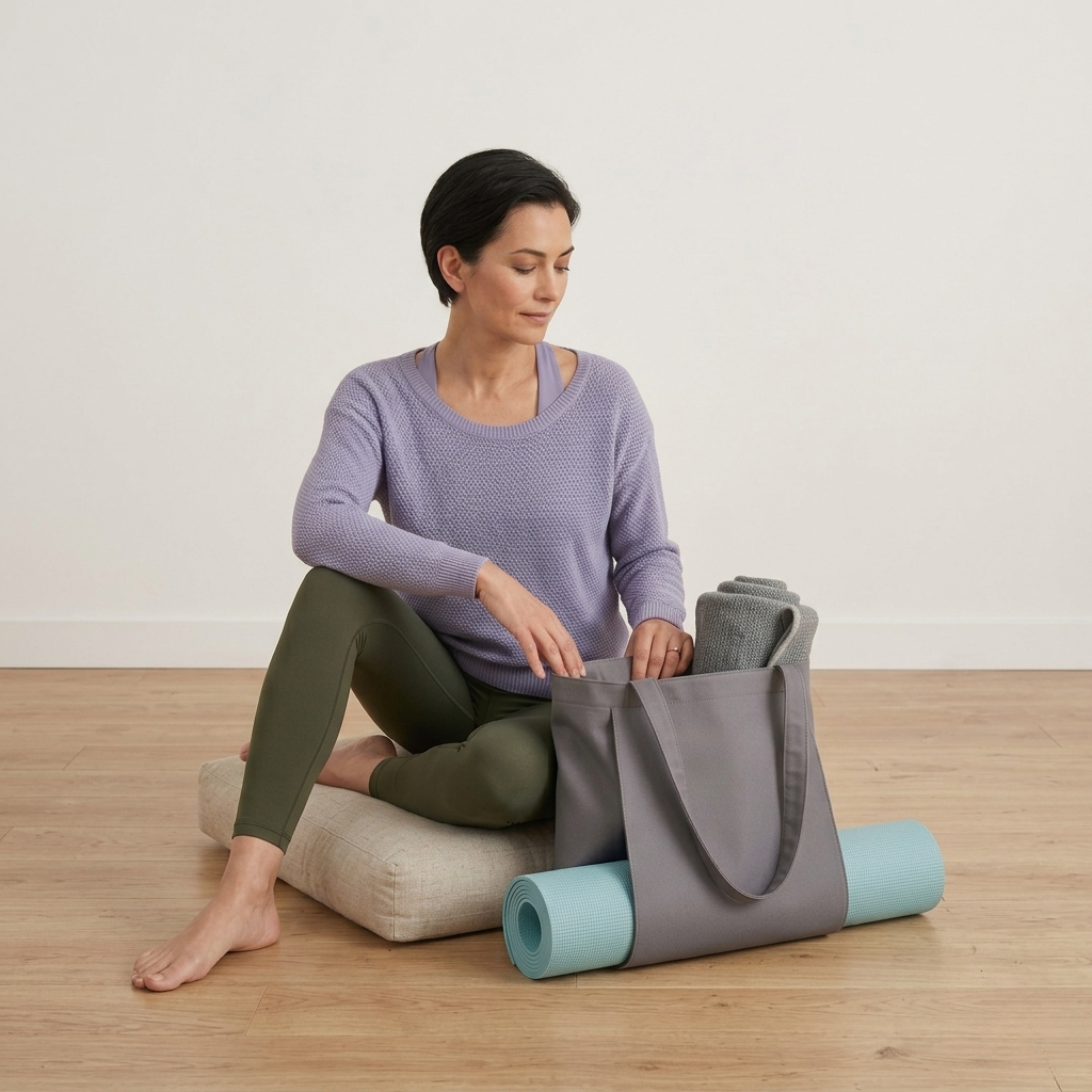 Imaginez un matin pressé, entre boulot, yoga et rendez-vous. Votre tapis encombre une main, votre sac déborde de l’autre. Vous vous sentez déjà débordée.